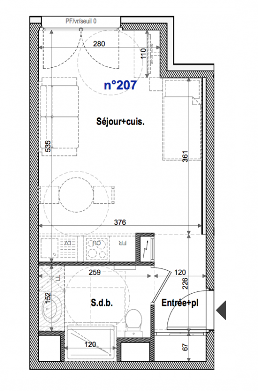 152 999€ Appt. Studio 26m2 0-RDC