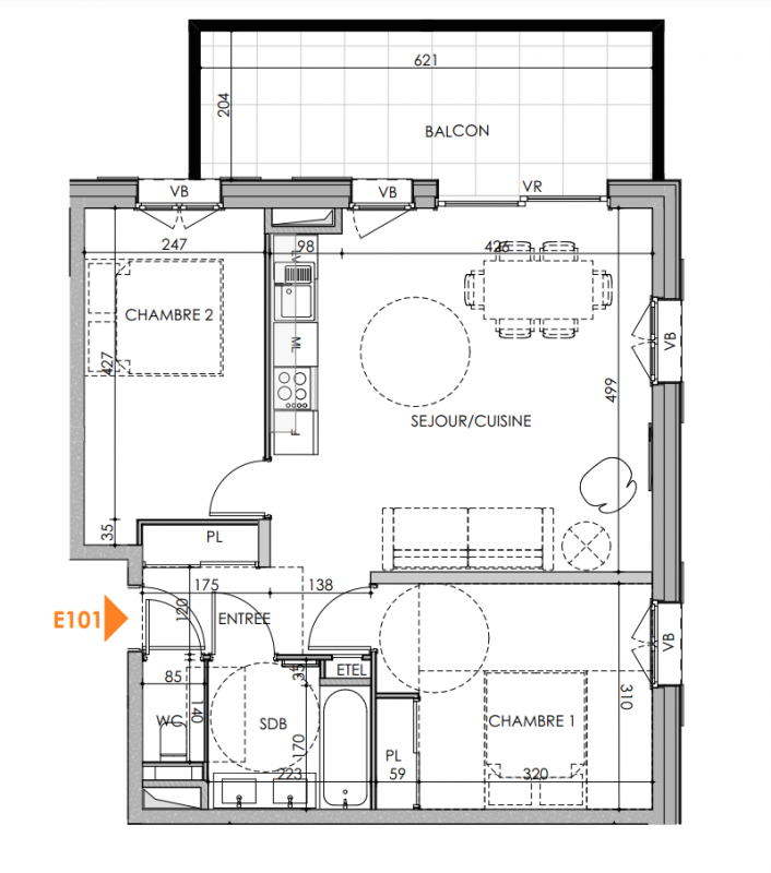 524 000€ Appt. T3 72.21m2 0-RDC