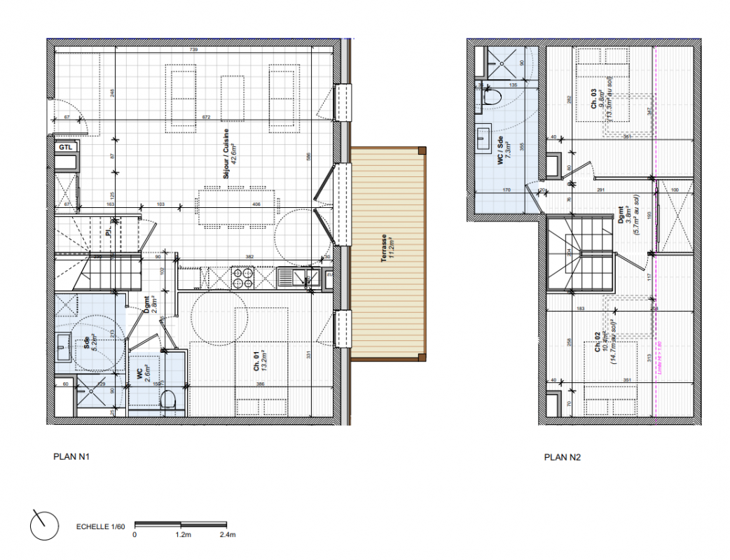 La résidence Les Chalets Bajja se compose de 25 logements répartis en trois entités :Un bâtiment collectif (A) de 23 appartements du 2 au 4 piècesDeux chalets individuels (B et C)L’architecture s’inspire des codes traditionnels des chalets d’alpage : bardage bois, toitures gris ardoise, soubassements sur pilotis.Les intérieurs offrent des volumes généreux (hauteur sous plafond min. 2,50 m) et sont prolongés par de vastes balcons ou terrasses pour profiter pleinement du panorama alpin.La construction respecte la RT 2012, la réglementation acoustique et PMR.Emplacement premium : à 700 m du téléski du Reguet, au pied des pistes et proche des commercesRésidence intimiste : seulement 25 logementsBalcons et terrasses spacieux avec platelage boisArchitecture authentique et contemporaineStationnement en sous-sol, caves privatives, casiers à ski, local vélosParties privatives :Revêtements sols : carrelage grand format (Novoceram ou Porcelanosa) dans pièces de vie, parquet contrecollé bois dans chambresMurs et plafonds : peinture satinée claire, un mur séjour habillé boisSalle de bains : meuble vasque avec miroir et LED, faïence toute hauteur, baignoire ou douche avec pare-douche, sèche-serviette électriqueMenuiseries extérieures : bois avec double vitrage, volets roulants motorisés ou battants boisTerrasses et balcons : platelage bois vissé sur lambourdesPortes palières : blindées anti-effraction, serrure 3 points A2PParties communes :Hall décoratif avec carrelage 60x60, faux plafond acoustiqueContrôle d’accès Vigik vidéophone (Bâtiment A)Ascenseur 630 kg dans Bâtiment ATechniques :Chauffage par pompe à chaleur (PAC) : collectif pour Bâtiment A, individuel pour B et CProduction ECS : système mixte PAC chaudière gaz ou ballons individuelsVMC hygroréglableÀ proximité immédiate :Téléski du Reguet : 700 mCommerces, restaurants, marché local : 500 mDomaine skiable : Espace Diamant (192 km de pistes)Accès :En voiture : D1212 (3 km), A43 (45 km)En train : Annecy à 54 km