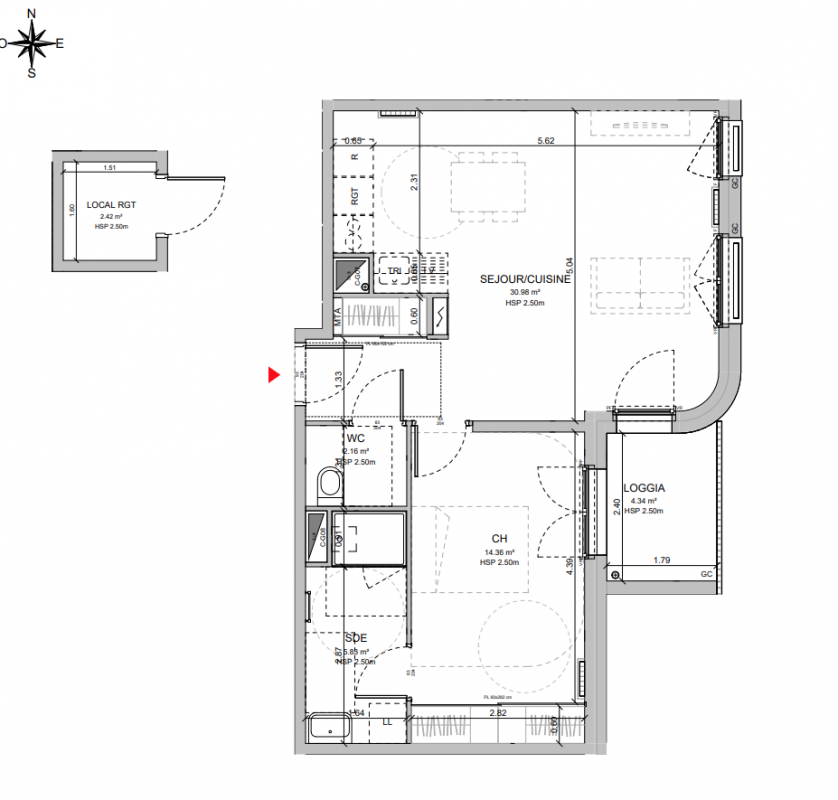 191 500€ Appt. T2 46.46m2