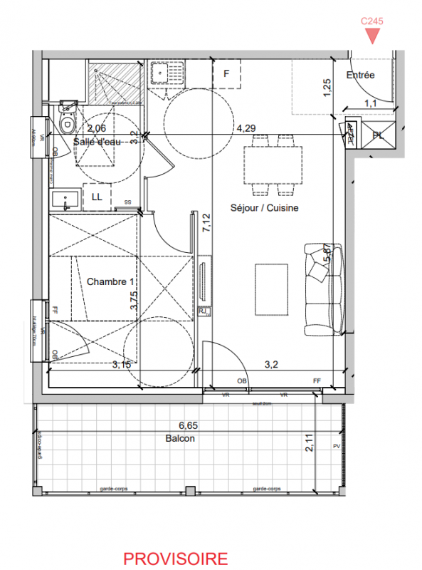 217 820€ Appt. T2 43.47m2 2ème