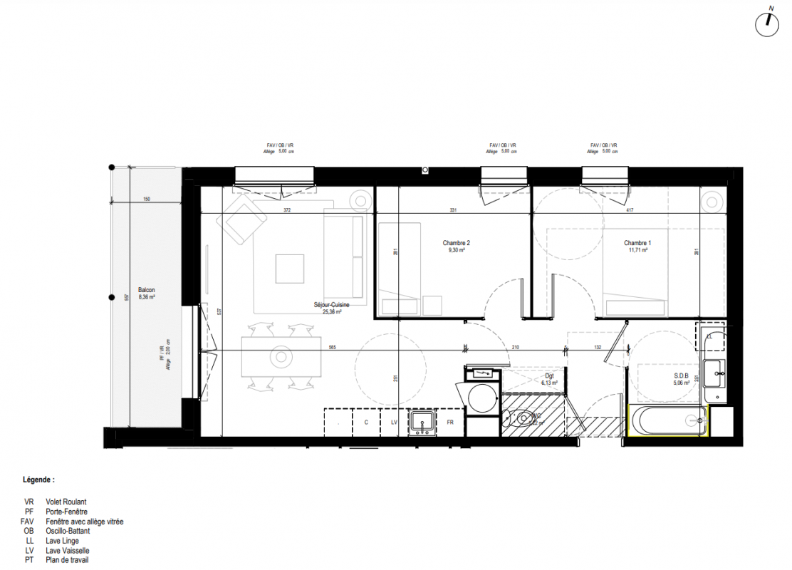 204 626€ Appt. T3 58.78m2 0-RDC