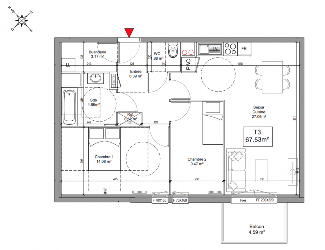248 000€ Appt. T3 59.6m2 1er