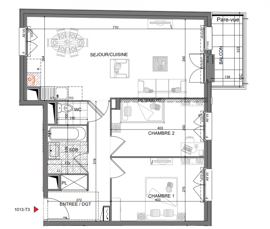 | Voir | Disponible | 255 001€ | 1002 | Appt. | T3 | 60m2 | 0-RDC | Disponible | 255 001€ | Voir |