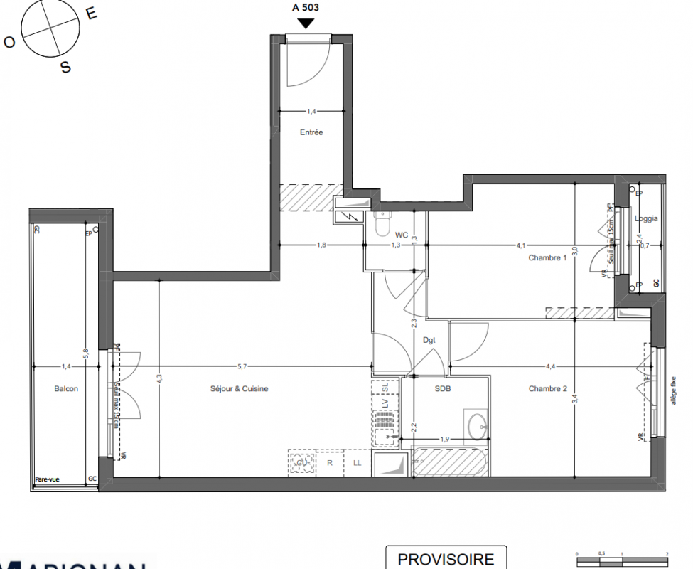 399 000€ Appt. T3 59.63m2 2ème