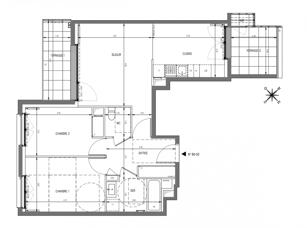 Cloisons épaisseur 7 cm dans l’ensemble des logements