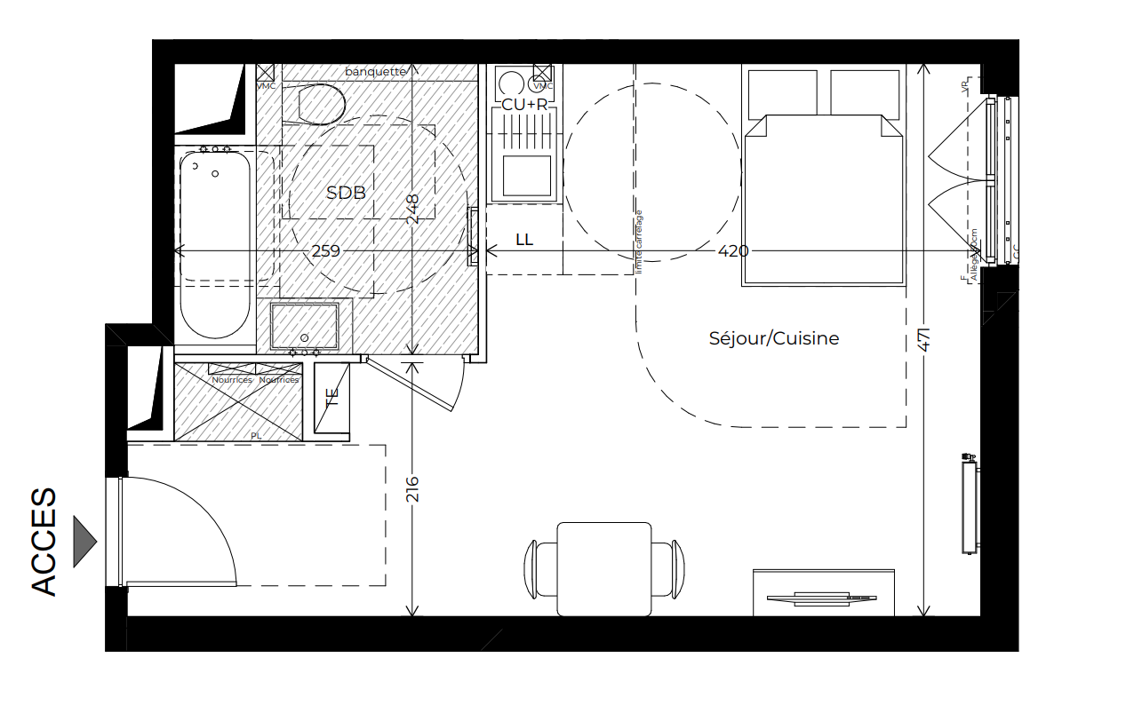 | Voir | Disponible | 333 000€ | A01 | Appt. | - | 43.8m2 | 0-RDC | Disponible | 333 000€ | Voir |