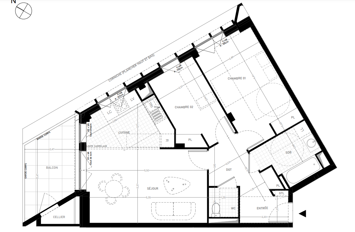 398 000€ Appt. T3 65.96m2 5ème