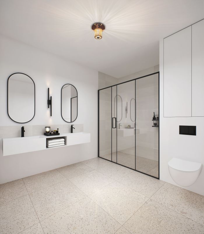 ParquetMenuiserie en boisCarrelage 60x60 cmVolets roulants motorisés et centraliséStores électriquesWC suspendusReceveur de douche extra plat ou baignoire robinetterie thermostatique...