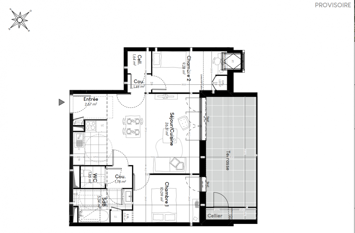 *Les frais de notaire sont pris en charge par la SCI, hors frais d'hypothèque, de garantie bancaire et de règlement de copropriété. **Cuisine offerte comprenant : plaque à induction, hotte aspirante, four, évier et mitigeur, plan de travail, crédences, plinthes et poignées des portes. Meubles hauts et bas selon la configuration du plan de vente. Fourniture et