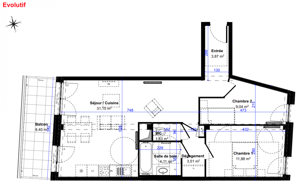 404 000€ Appt. T3 65.8m2 2ème