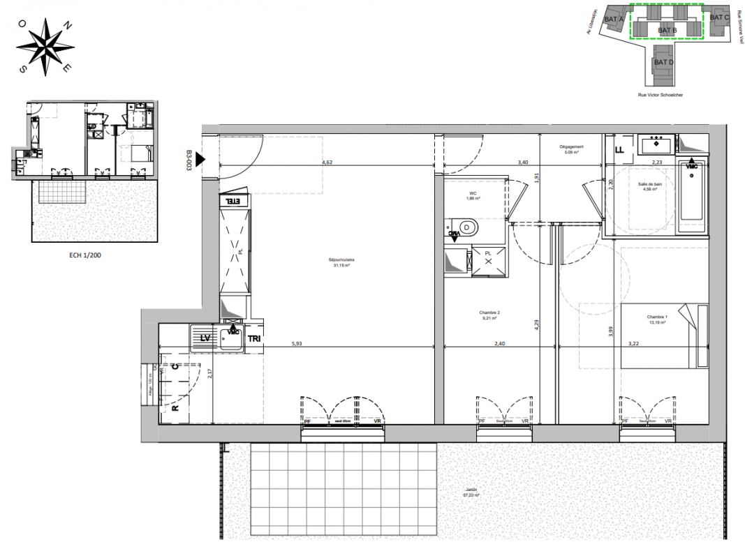 362 000€ Appt. T3 66.96m2 0-RDC