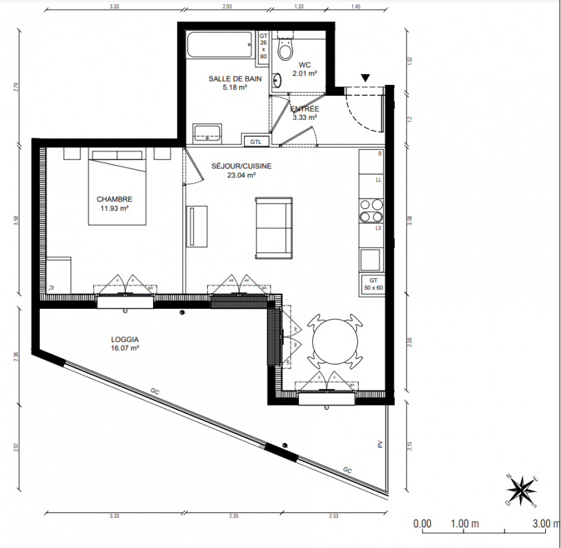 327 583€ Appt. T2 49.52m2 6ème