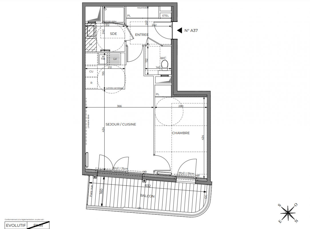 321 896€ Appt. T2 42.54m2 2ème