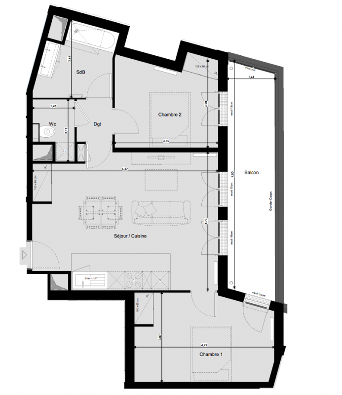 799 900€ Appt. T3 78.81m2 6ème
