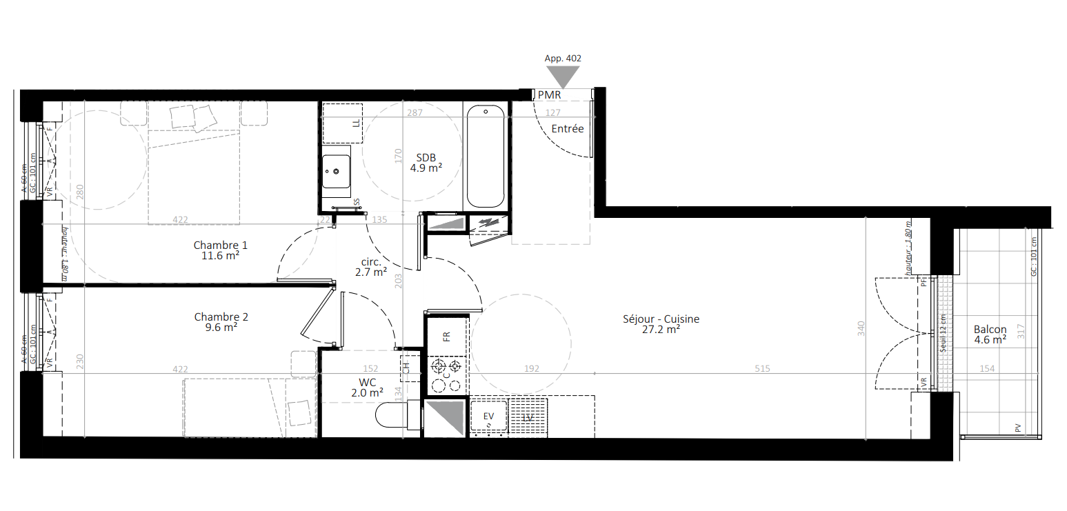 277 422€ Appt. T3 57.4m2 2ème