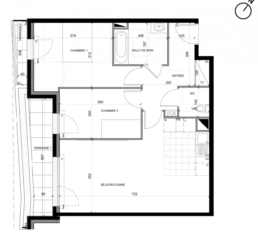 342 000€ Appt. T3 72.39m2 0-RDC