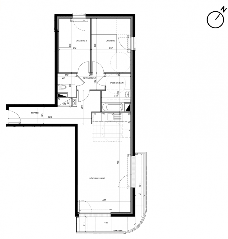 342 000€ Appt. T3 68.57m2 0-RDC