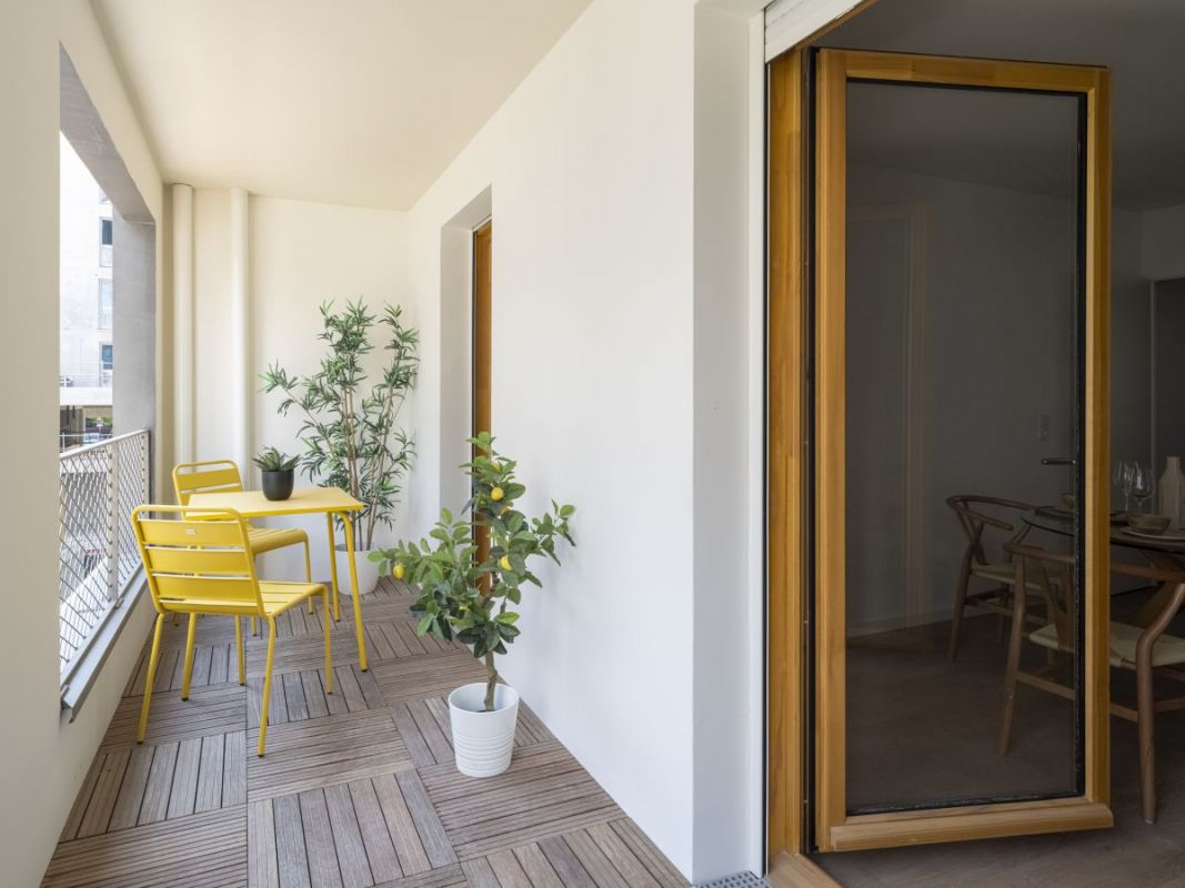 Tout juste livrée, la résidence s’inscrit dans un environnement urbain complet, offrant l’ensemble des commodités du quotidien et une accessibilité optimale. Elle bénéficie d’une proximité immédiate avec la future gare des Ardoines et se situe au pied d’un espace public paysager agréablement aménagé.