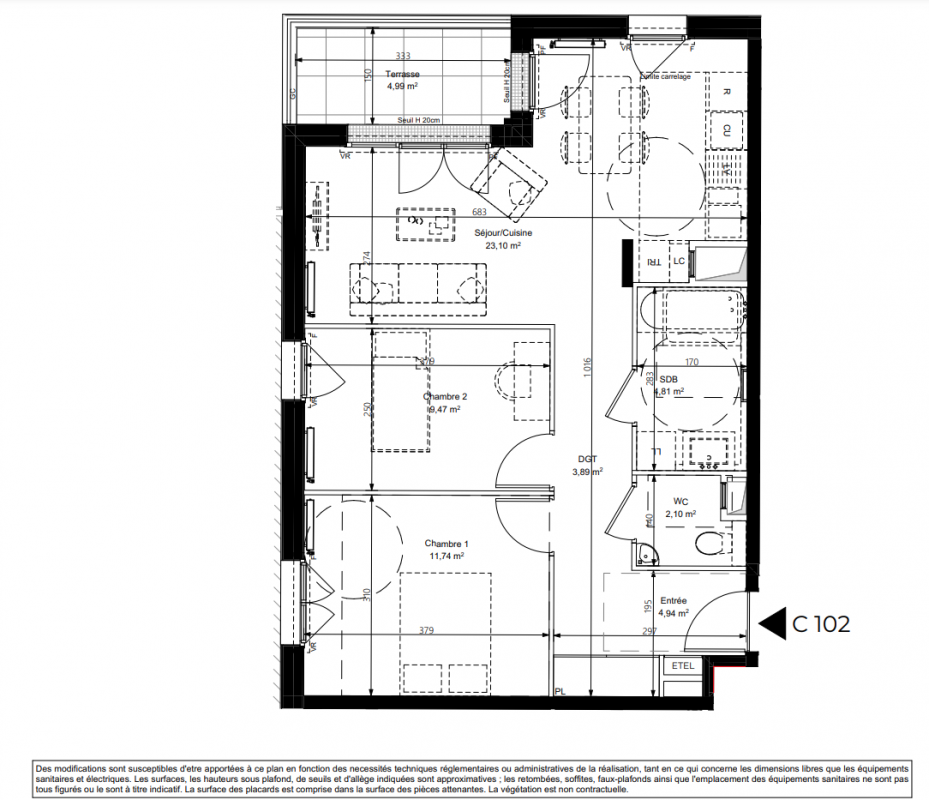 398 000€ Appt. T3 60.84m2 0-RDC