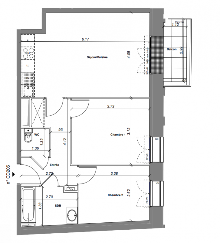 376 100€ Appt. T3 70.33m2 0-RDC