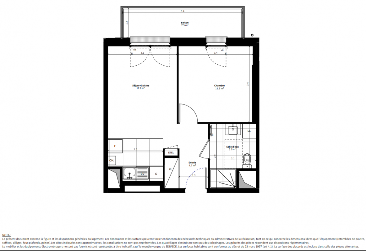 229 900€ Appt. T2 45.3m2 0-RDC