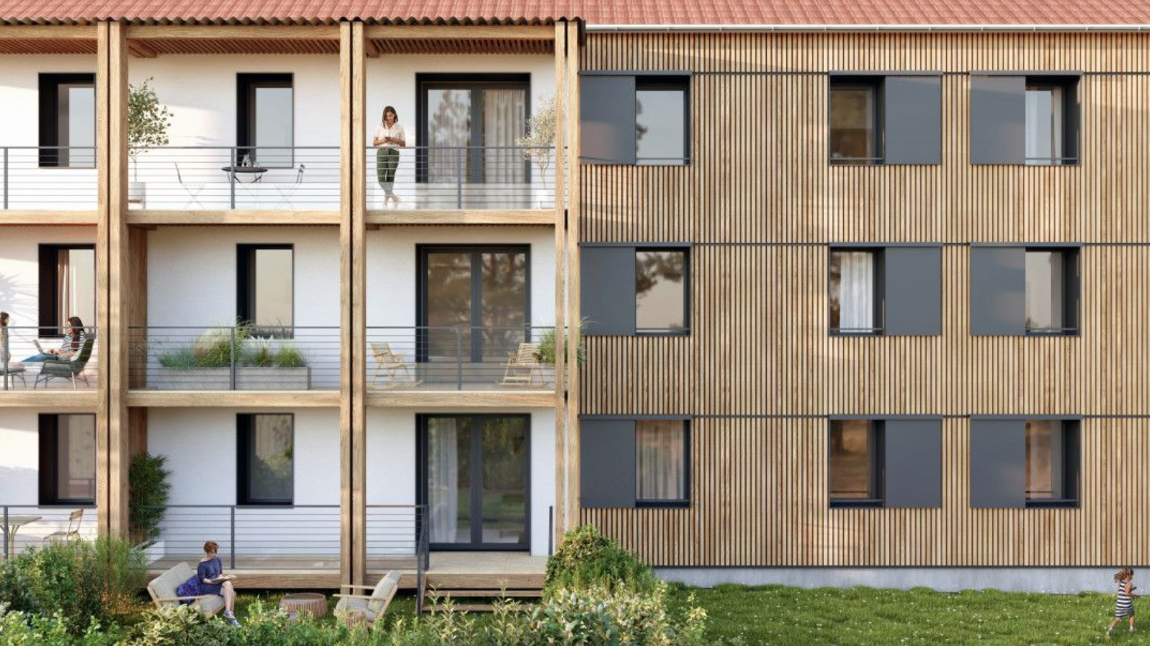La plupart des appartements disposent d'un balcon en bois naturel ou, pour ceux situés en rez-de-chaussée, d'un jardin privatif, idéal pour profiter de moments conviviaux entre amis ou en famille. La résidence inclut également des places de parking privatives, un grand local à vélos et des caves privées.