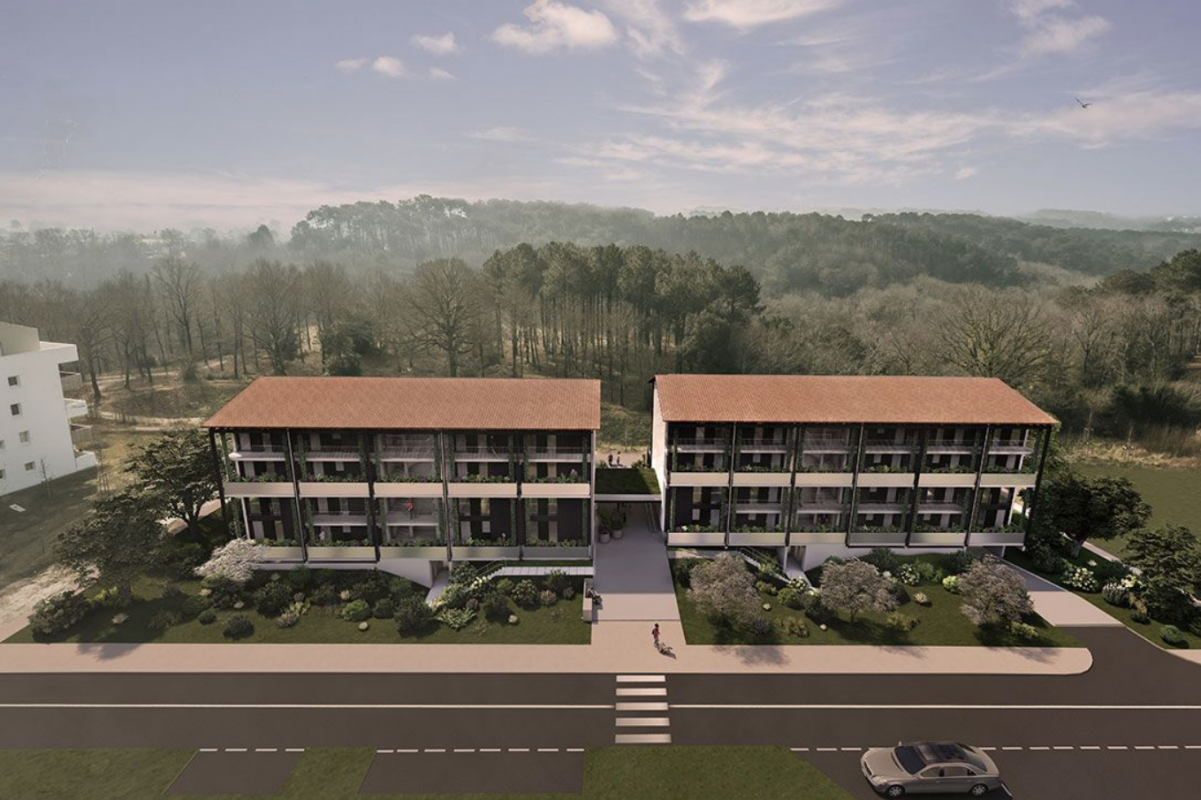 Situation: Située dans l’éco-quartier des 3 Fontaines à Ondres, face à une forêt préservée de pins des Landes ; À seulement 5 km de la plage et à moins de 1 km du centre-bourg ; Environnement naturel et apaisant, intégrant un parc habité avec équipements publics ; Quartier primé par la Pyramide d’Argent de la FPI Nouvelle Aquitaine 2024.Description: Résidence composée de 27 logements du T2 au T4, en simplex et duplex ; Tous les logements sont traversants, orientés sud, avec grands espaces extérieurs ; Présence de loggias privatives avec rangements et surfaces supérieures à la moyenne ; Architecture inspirée des maisons landaises, entre tradition et modernité.Prestation: Chauffe-eau thermodynamique et panneaux rayonnants électriques pour chaque logement ; Parking semi-enterré avec ascenseur et 2 places par logement ; Espaces partagés : local en rez-de-chaussée et terrasse commune pour les habitants ; Certains logements proposés en « volume capable » pour personnalisation maximale.Sécurité: Accès au parking sécurisé via ascenseur ; Conception garantissant intimité sans vis-à-vis grâce à l’orientation des terrasses.Qualité : Conforme à la RT 2025 et à une démarche bioclimatique avancée ; Utilisation de matériaux naturels et récupération des eaux de pluie.Accès : À 14 min à pied du bus et du tram ; À 8 min de la gare d’Ondres ; À 5 min de la ligne T2 reliant Tarnos à Bayonne ; À 25 min de Biarritz et 15 min de Bayonne.