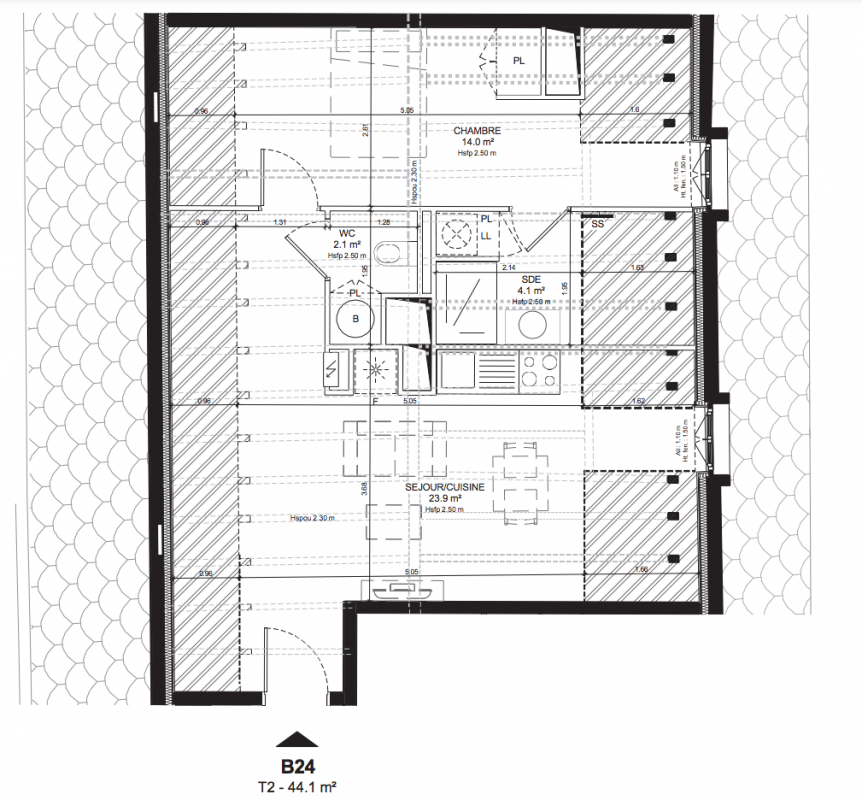 | Voir | Disponible | 347 300€ | B02 | Appt. | T2 | 44.6m2 | 0-RDC | Disponible | 347 300€ Prix foncier 24 000€ Prix travaux 323 300€ | Voir |