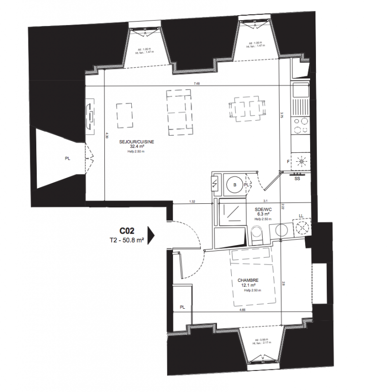 | Voir | Disponible | 358 800€ | C13 | Appt. | T2 | 47.5m2 | 1er | Disponible | 358 800€ Prix foncier 24 800€ Prix travaux 334 000€ | Voir |