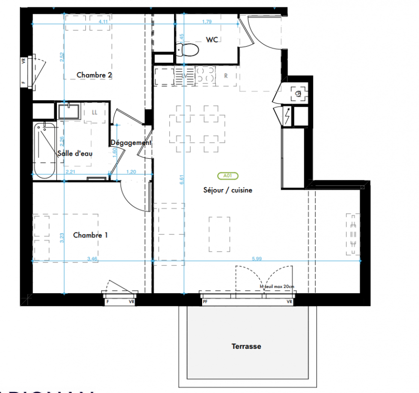 Voir | Disponible | 309 000€ | A05 | Appt. | T3 | 61.12m2 | 0-RDC | Disponible | 309 000€ | Voir |