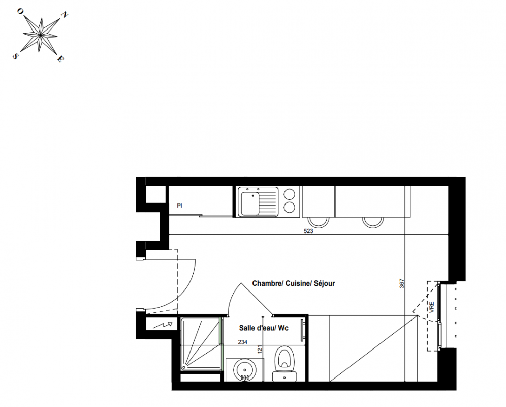 163 704€ Appt. Studio 23.03m2 1er