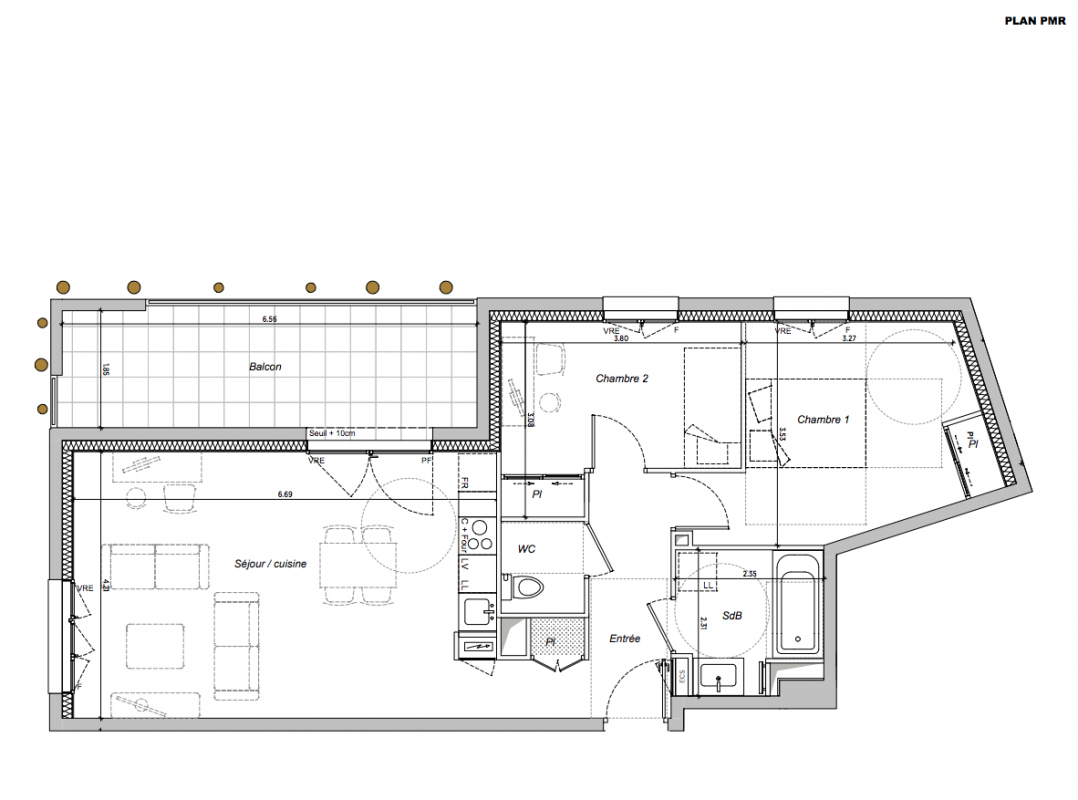 262 000€ Appt. T3 63.04m2 0-RDC