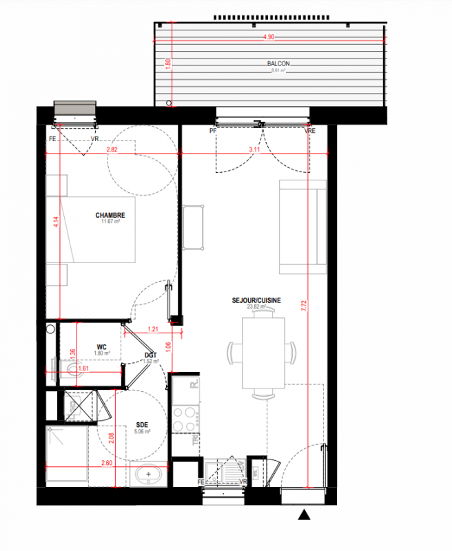 177 000€ Appt. T2 41.69m2 1er