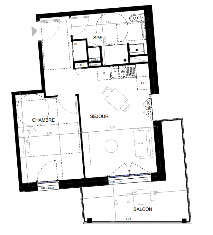212 600€ Appt. T2 42.75m2 1er