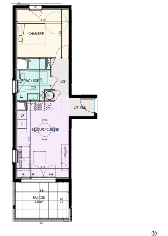 262 000€ Appt. T2 52.5m2 1er