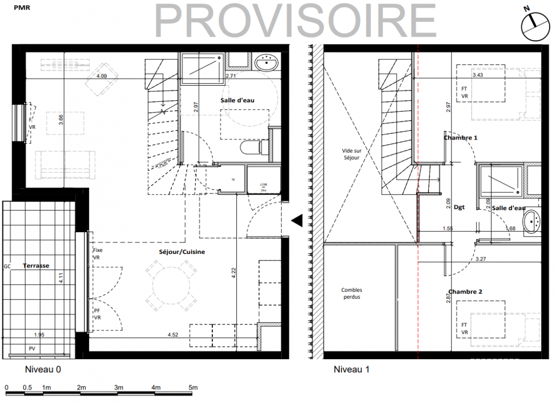 Les villas de 4 pièces offrent des séjours spacieux, cuisines ouvertes, suites parentales et terrasses prolongées par des jardins clôturés.